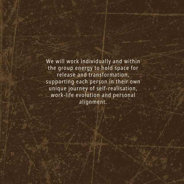 We will work individually and within the group energy to hold space for release and transformation, supporting each person in their own unique journey of self-realisation, work-life evolution and personal alignment.